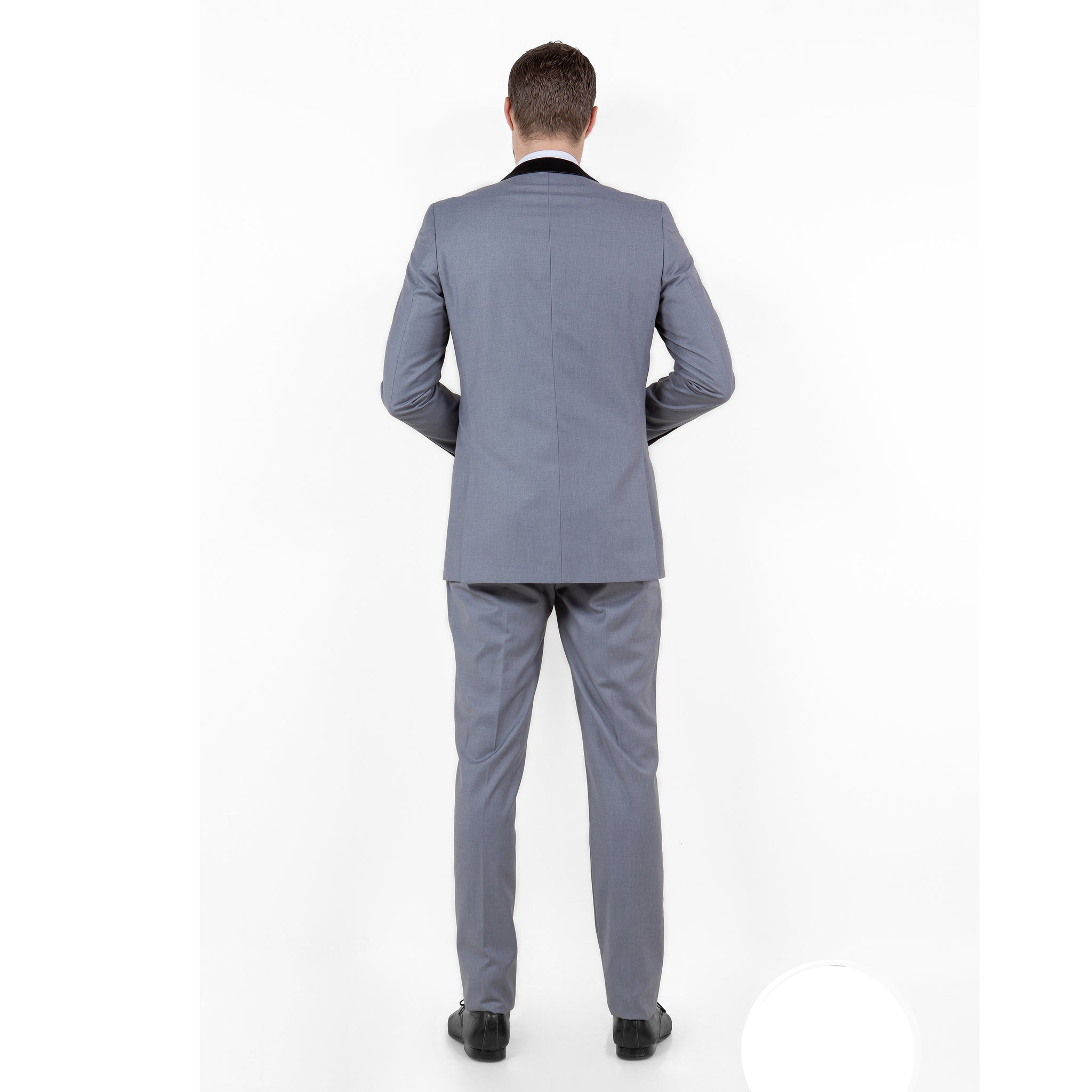 Gray / Black Solid with Black Shawl Collar Trim 2-PC Slim Fit Suits