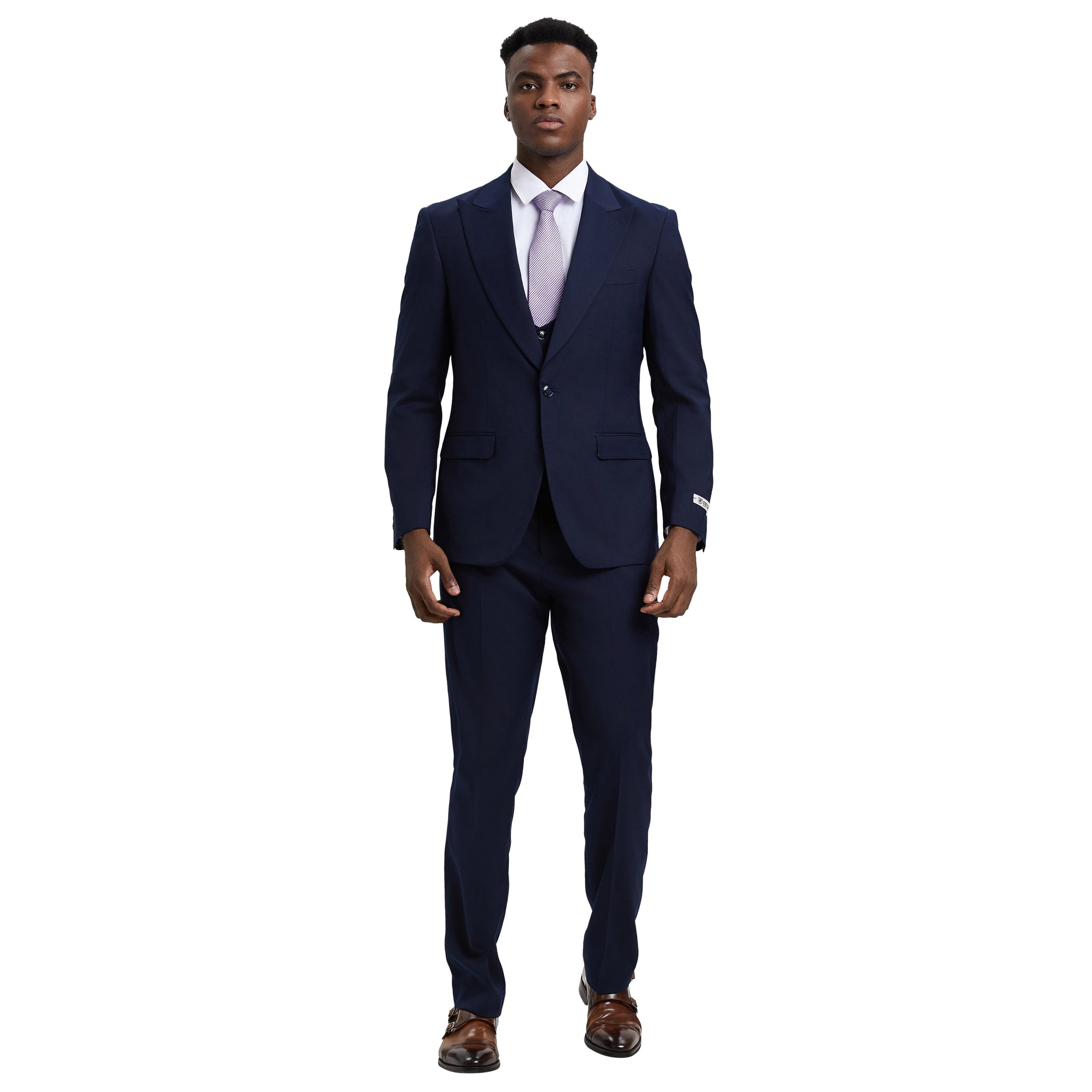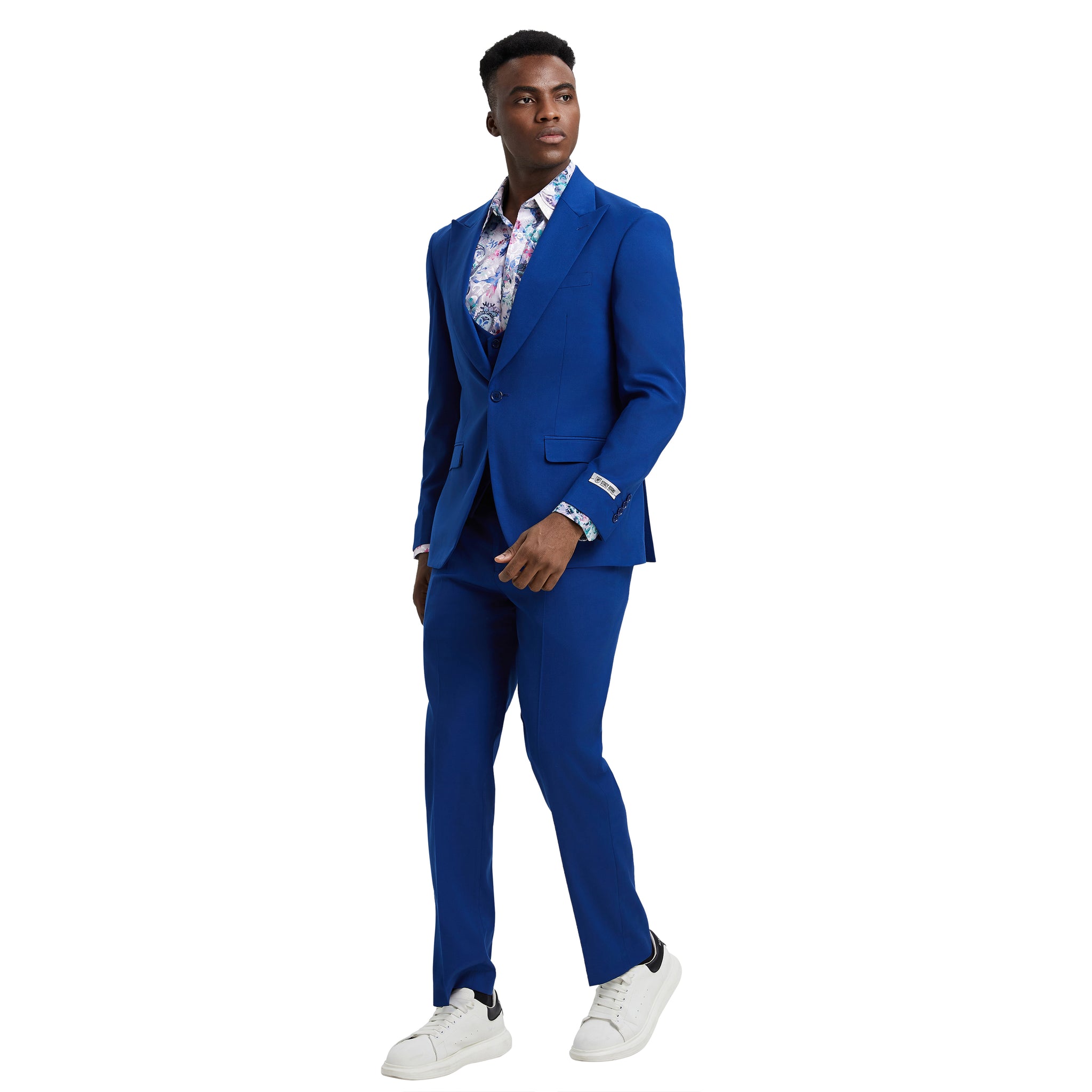 Experience timeless sophistication with the Stacy Adams Hybrid-Fit 3pc Suit Set in serene sky blue, meticulously crafted for the modern gentleman. The solid sky blue jacket boasts a two-button front closure, peak lapel, and underarm sweat guards, ensuring both style and comfort. Complementing the ensemble, the sky blue U-shaped vest features a four-button closure for added refinement. The flat-front sky blue pants, complete with an expandable waistband and functional pockets, offer unparalleled versatility. Available in slim-fit sizes 36-44 and modern-fit sizes 46-62, this sky blue suit set caters to diverse preferences, promising a tailored look for every occasion. Unleash your confidence and sophistication with the Stacy Adams Hybrid-Fit 3pc Suit Set in sky blue.