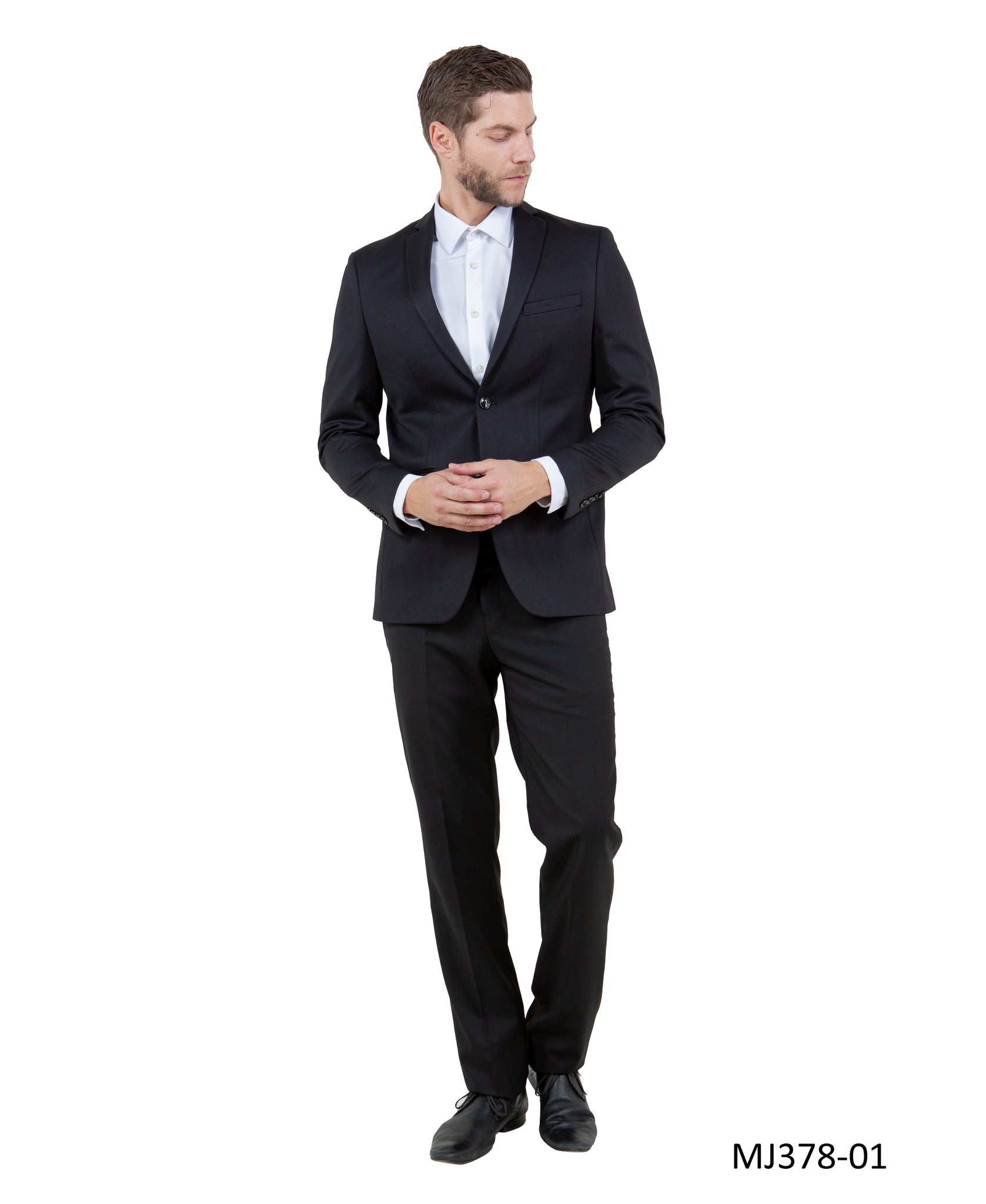 The Tazzio Men's Knit Slim-Fit Blazer brings a touch of luxury and sophistication to your wardrobe. Made from rich high quality fabric, it features a one-button front closure and a peak lapel for a refined look. The slim fit provides a sharp silhouette, while the interior French facing and satin-trimmed pockets add subtle elegance. Practical details include two flap front pockets, a chest pocket, three interior pockets, and underarm sweat guards for added comfort. Ideal for both formal events and dressing up your daily outfits.