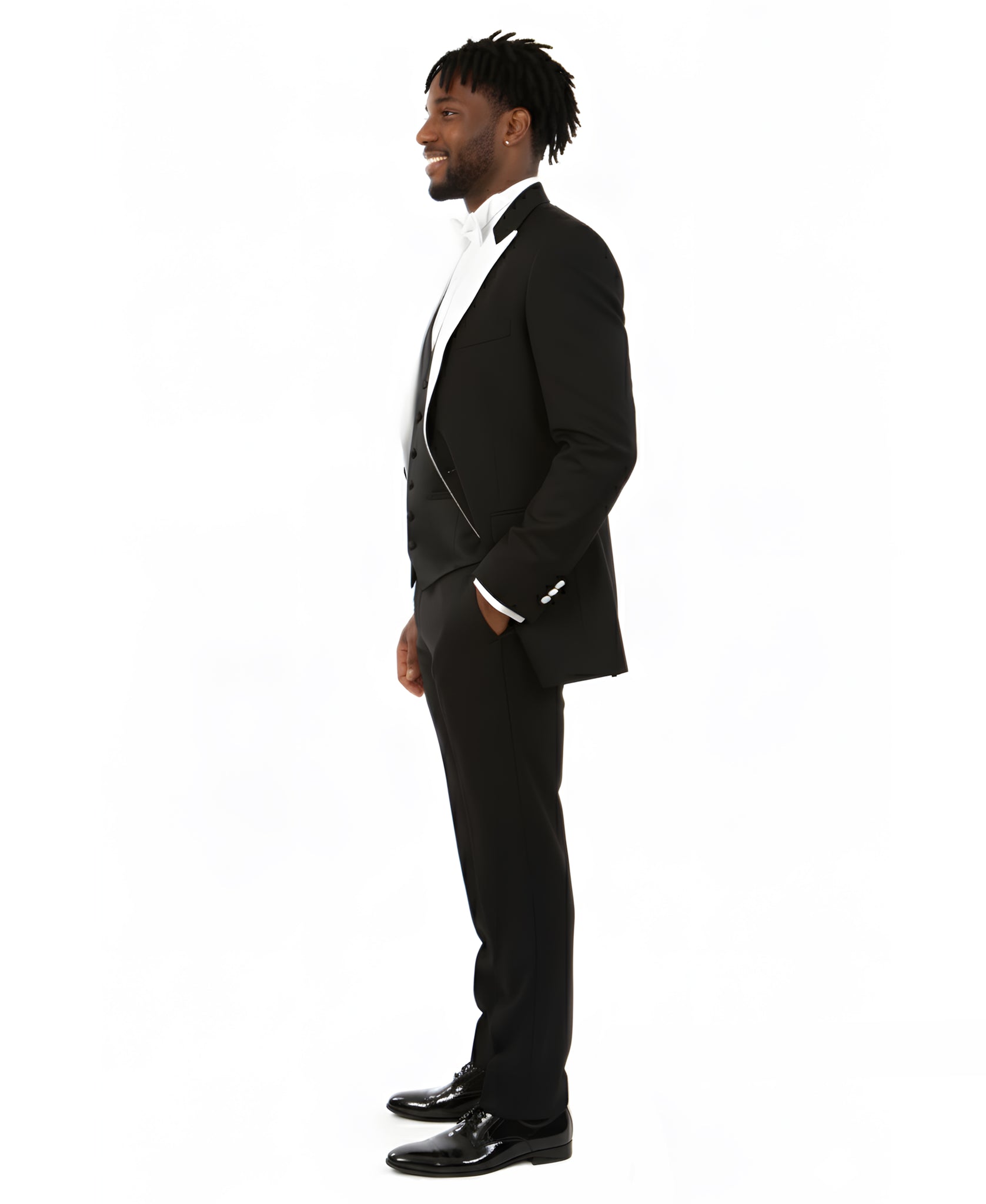 The Power Trio: It's a true three-piece ensemble, which is like wearing a sartorial suit of armor. The vest (waistcoat) keeps you looking perfectly tailored even if you unbutton the jacket to hit the dance floor.
